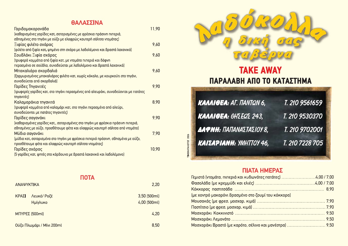 Προφίλ ΜΕΝΟΥ Τα Εστιατόρια μας Λαδόκολλα Καλιθέας 1 Λαδόκολλα Καλιθέας 2 Λαδόκολλα Χαϊδαρίου Λαδόκολλα Περιστερίου Λαδόκολλα Καισαριανής Λαδόκολλα Δάφνης Λαδόκολλα Πειραιά Λαδόκολλα Ν. Φιλαδέλφειας Επιχειρήσεις Ομίλου Επικοινωνία Μενού Ακολουθήστε μας στα Social Media Facebook Twitter Instagram